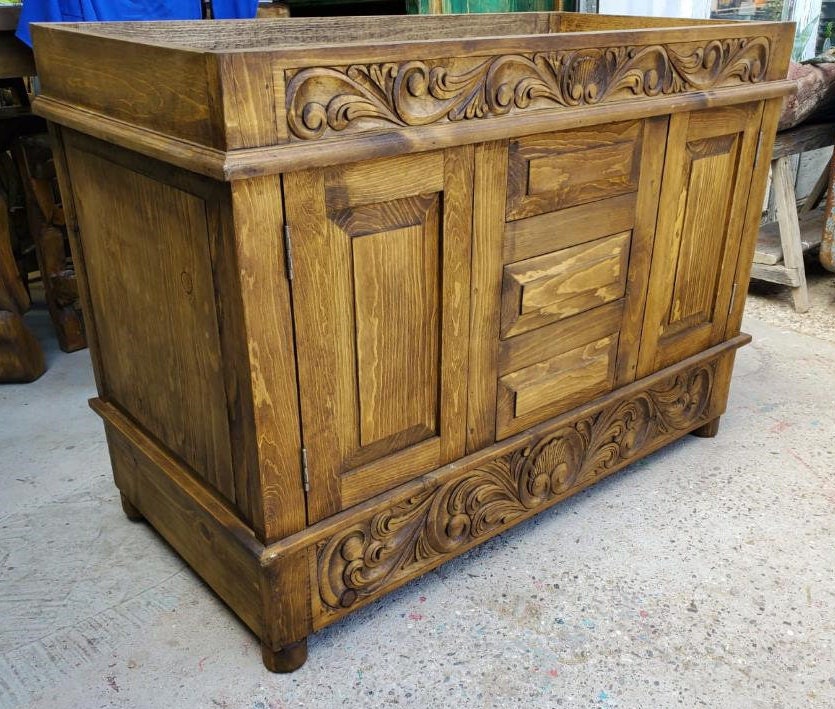 rustic Bathroom Vanity Carved