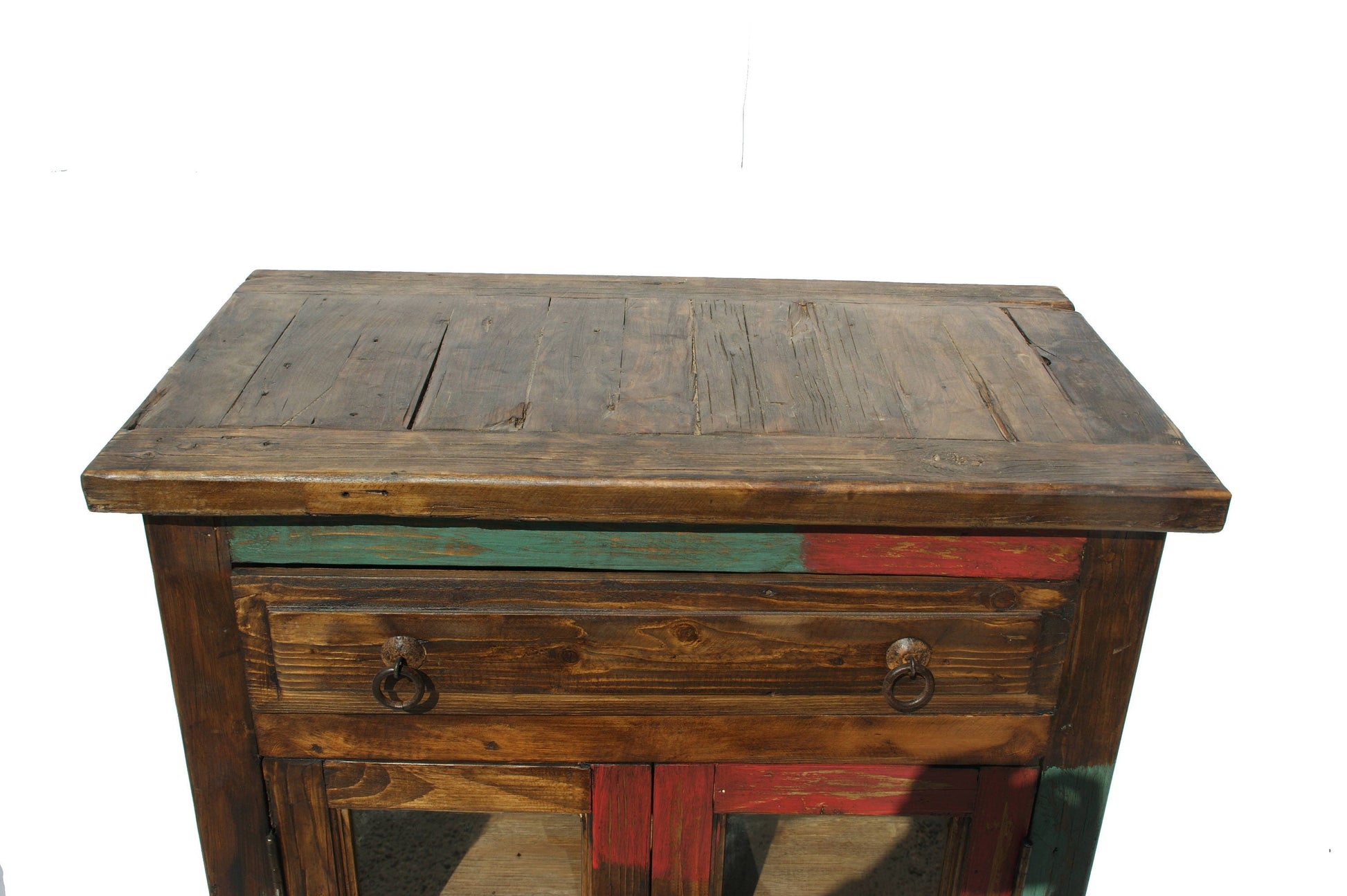 Beautiful reclaimed wood tall cabinet, 2 glass doors. It has 2 drawers to give you plenty of storage space.
